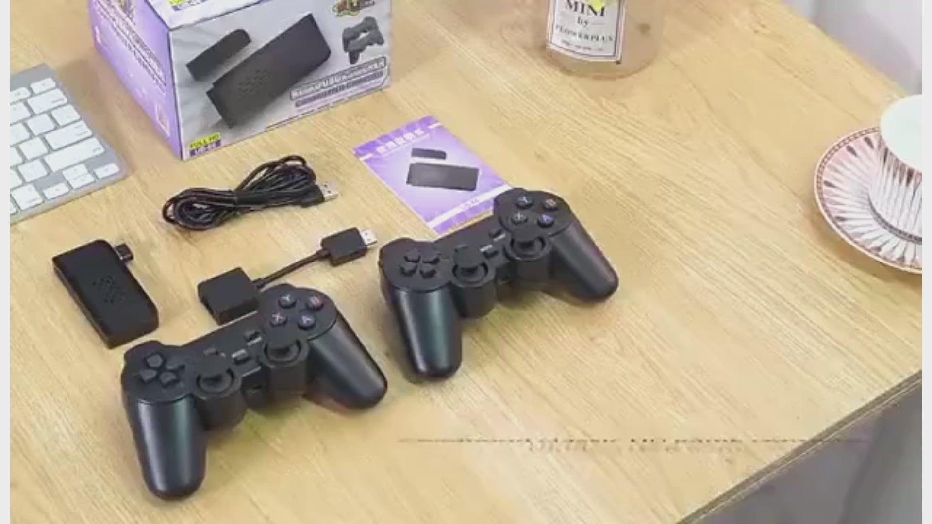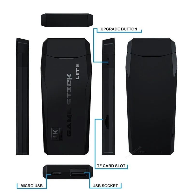 Accesorios Incluidos: Consola Game Stick, 2 Mandos inalámbricos, Tarjeta TF con juegos, Cable de alimentación y Manual.